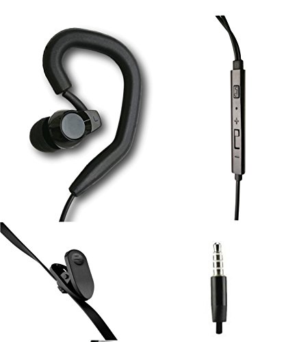Blue Star Cuffie Auricolari Sportive In Ear da Allenamento con Filo Microfono Regolatore Volume Jack 3.5 mm Archetto Adattabili Orecchio per Correre Sport Fitness Palestra Ciclismo Footing Nere