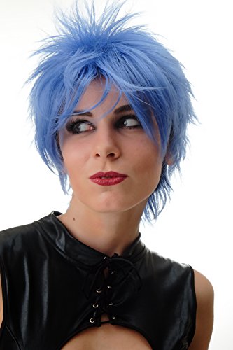 WIG ME UP - BLUE144-T4043 Parrucca Donna Parrucca capelli corti Corta Cotonata Ciocche scompigliate Anni 80 Wave Punk Blu