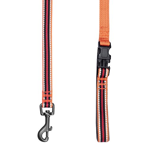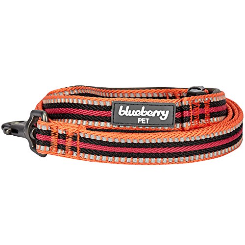 Blueberry Pet Lead with Soft & Comfortable Handle, 150 cm x 1.5cm 3M Reflective Multi-Colored Stripe Dog Lead in Orange & Black, Small