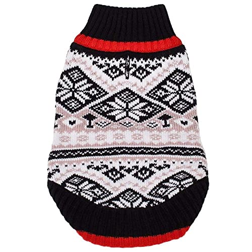 Blueberry Pet Nordic Pattern Inspired Fair Isle Black And White Snowflakes Dog Jumper, Back Length 36cm