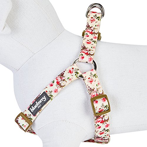 Blueberry Pet - Pettorina per cani con scritta "Step-in", ispirata al profumo primaverile, con rose rosa, avorio, circonferenza toracica 42 - 54 cm, piccola, regolabile per cani
