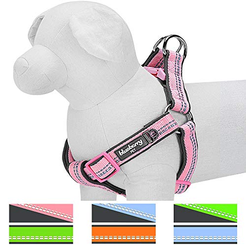 Blueberry Pet 3M Reflective Step-in Pastel Baby Pink Neoprene Paddd Dog Harness, Medium