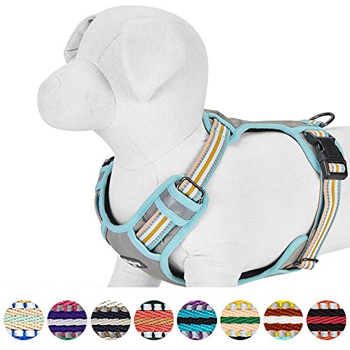 Blueberry Pet New Soft & Comfy 3M Reflective Multi-Colored Stripe Padded Dog Harness Vest, Chest Girth 72cm-98cm, Neck 62cm-98cm, Pastel Blue & Beige, Large, Mesh Harnesses for Dogs