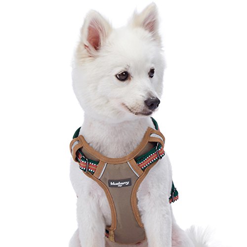 Blueberry Pet New Soft & Comfy 3M Reflective Multi-Colored Stripe Padded Dog Harness Vest, Chest Girth 56cm-68cm, Neck 45cm-66cm, Dark Green & Pink, Medium, Mesh Harnesses for Dogs