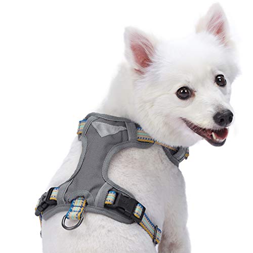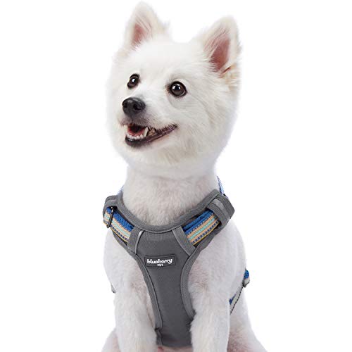 Blueberry Pet New Soft & Comfy 3M Reflective Multi-Colored Stripe Padded Dog Harness Vest, Chest Girth 45cm-54cm, Neck 37cm-52cm, Ginger & Blue, Small, Mesh Harnesses for Dogs