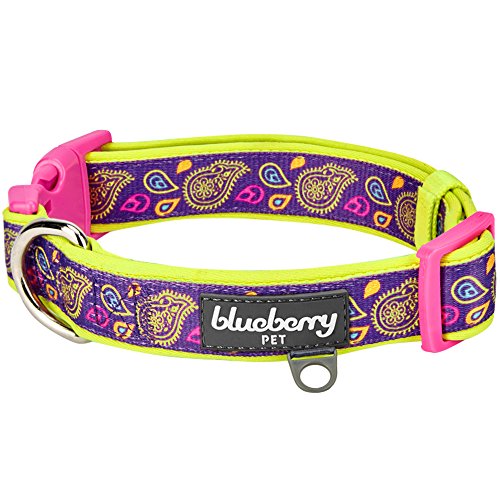 Blueberry Pet Soft & Comfy Spring Vibrant Paisley Flower Print Dark Orchid Adjustable Neoprene Padded Dog Collar, Neck 37cm-50cm, Medium, Collars for Dogs