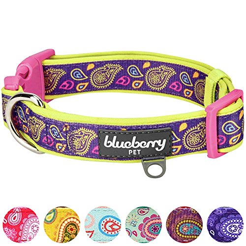 Blueberry Pet Soft & Comfy Spring Vibrant Paisley Flower Print Dark Orchid Adjustable Neoprene Padded Dog Collar, Neck 45cm-66cm, Large, Collars for Dogs