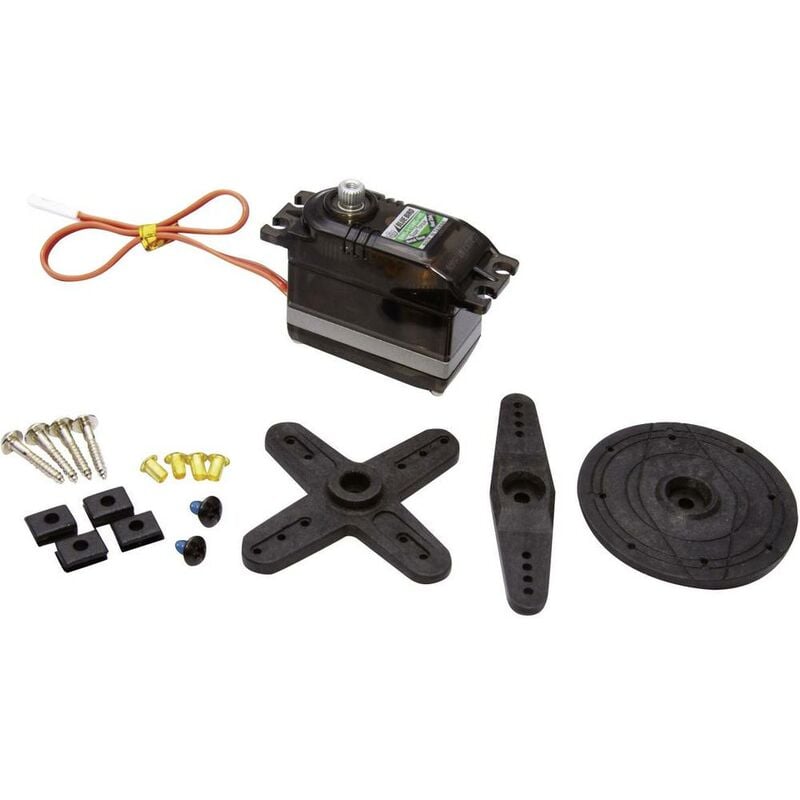Dettagli tecnici Altezza 38 mm Coppia (6 V) 100 Ncm Dimensioni (L x L x A) 40.5 x 20 x 38 mm Larghezza 20 mm Lunghezza 40.5 mm Materiale trasmissione Metallo Max. Voltaggio operativo 6 V Min. voltaggio operativo 4.8 V Nome modello BMS-616MG+HS Peso 51 g Sistema innesto JR Tensione d'esercizio (intervallo) 4.8 - 6 V Tipo cuscinetti Cuscinetto a sfere doppio Tipo prodotto Standard Servo Requisiti di sistema