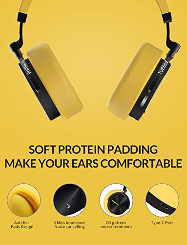 Bluedio T5 Cuffie Bluetooth Circumaurali con Cancellazione Attiva del Rumore, Bluetooth 4.2,Over-Ear Cuffie Stereo Portatili Senza Fili Con Filo con Microfono per cellulare telefono PC musica - Giallo