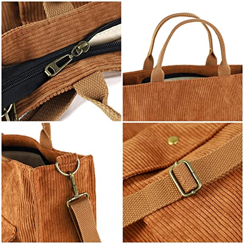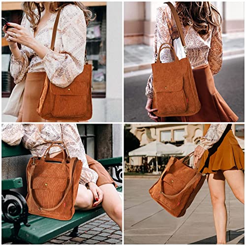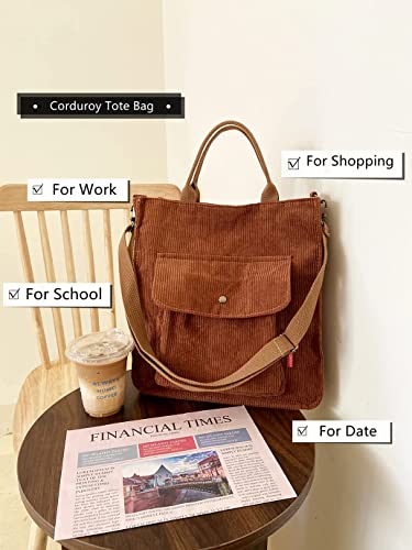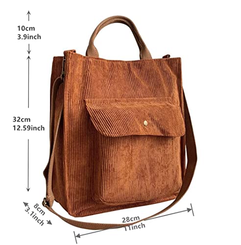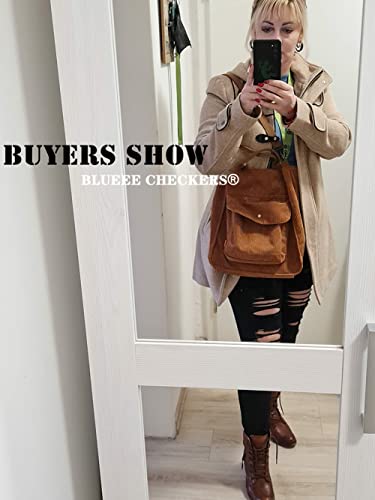 BLUEEE CHECKERS Borsa a tracolla in velluto a coste,Borse casual retrò,Borsa da donna, Borse a spalla da donna Borsa grande capacità,Vintage Shopper Messenger Bag (Marrone)