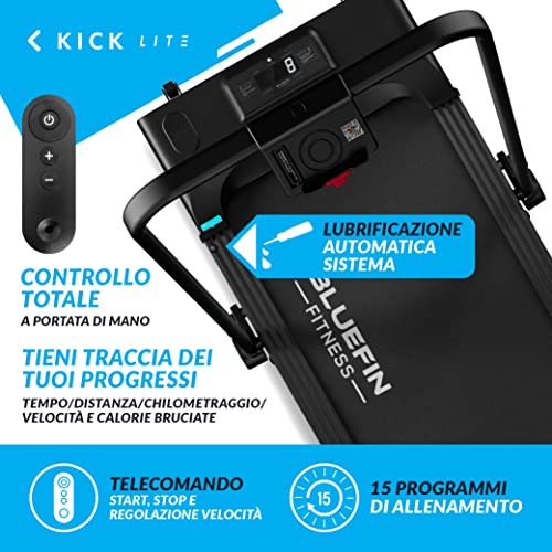 Bluefin Fitness Kick LITE Tapis Roulant | Utilizzabile sotto le scrivanie rialzate | Pieghevole e perfetto per casa | Tapis Roulant compatto | Compatibile con Kinomap | Leggero con manubrio pieghevole
