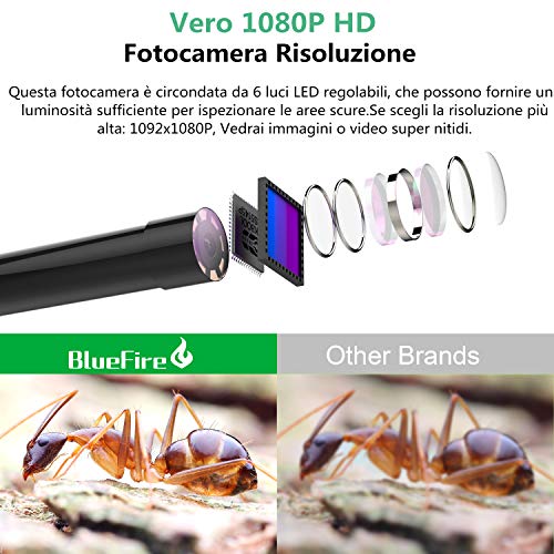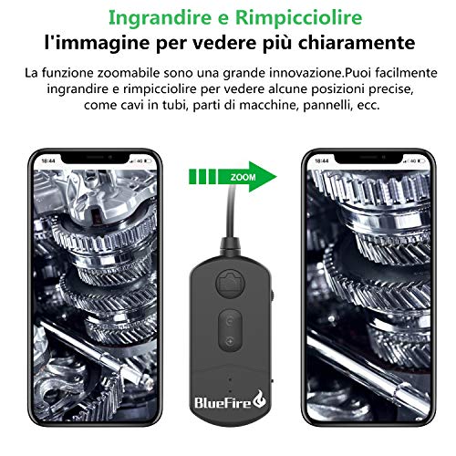 BlueFire Aggiornato Endoscopio WiFi, 1080P 5.5mm 1800mAh 2MP Zoom Rigido Telecamera Ispezione, Endoscopio, Inspection Camera, Snake Camera, Telecamera Endoscopica per iOS Android Phone Tablet(10M)