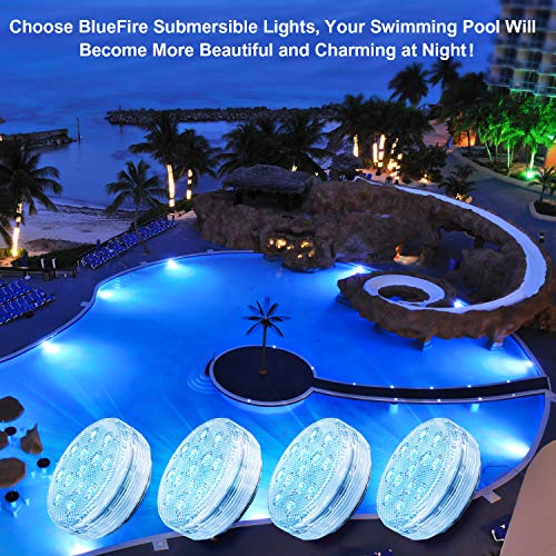 BlueFire Luci Piscina LED Sommergibili, Luci Subacquee RGB Multicolori con Ventosa Magnetiche Telecomando RF, 13 LED IP68 Impermeabile Luci per Piscina Acquario Vasca Festa Decorazione(4 Pezzi)