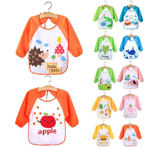 Bluelans Grazioso bavaglino / grembiule / camice a maniche lunghe da bimbo, impermeabile, con motivo a cartone animato