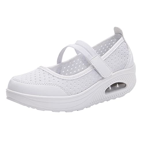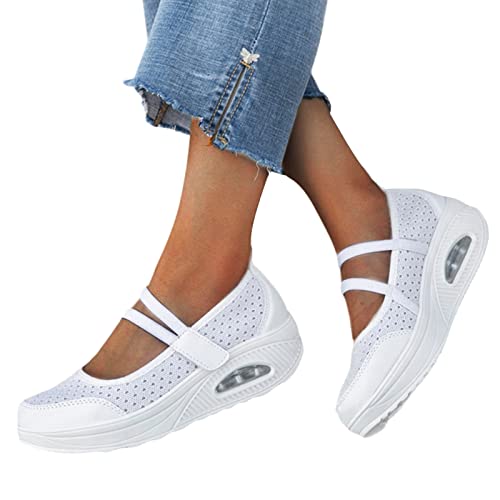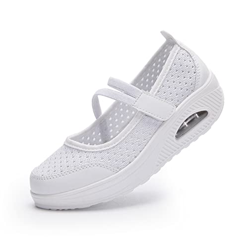 Bluelucon Scarpe da corsa da donna, colore bianco, con imbottitura ad aria, impermeabili, da corsa, jogging, scarpe basse con tacco, bianco, 36 EU