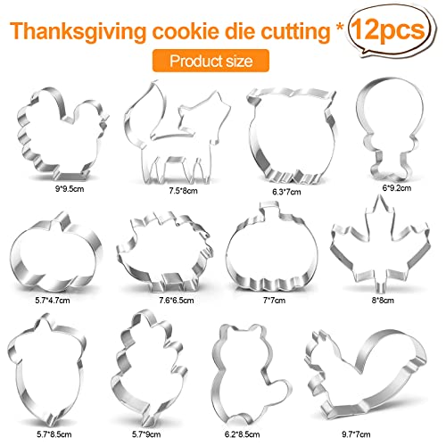 ★* Set di formine biscotti autunno: 12 diverse forme di biscotti tra cui zucca, tacchino, scoiattolo, pinoli, volpe, foglia di quercia, riccio, foglia d'acero, gufo, ecc. È facile da usare per i bambini per ritagliare facilmente bellissimi biscotti.