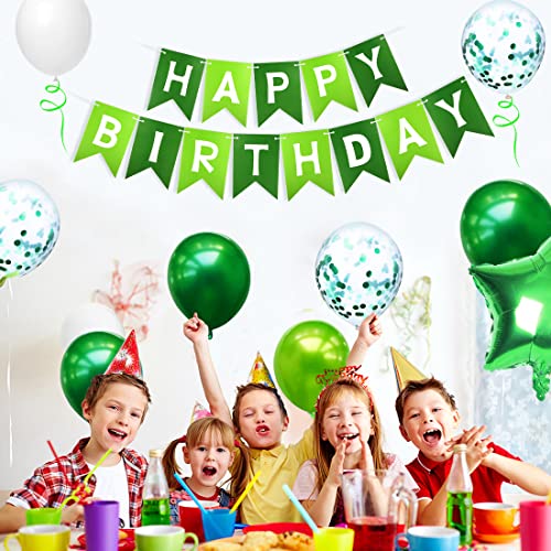 Decorazioni per palloncini: il set di palloncini include 1 palloncino in foil numero 5, 2 palloncini in foil a forma di stella, 6 palloncini con coriandoli e 18 palloncini in lattice (6 verde burrasca, 6 verdi e 6 bianchi).