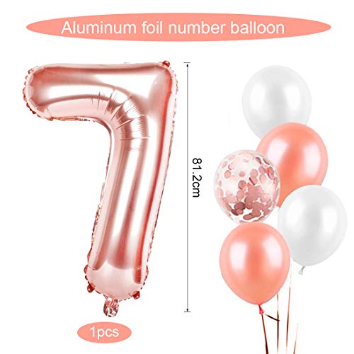 Bluelves Oro Rosa Palloncini 7, Palloncini Compleanno 7 Anno, Palloncino Numero 7, Palloncini Pompleanno, Numero 7 Gonfiabile Compleanno, Compleanno Palloncini in Lattice Coriandoli Palloncini
