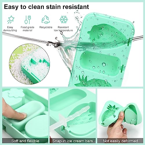 【Facili da smontare】I bastoncini per ghiaccioli sono facili da sformare, realizzati in silicone, buona elasticità, recuperabili dopo la torsione, non appiccicosi, facili da sformare. Design della maniglia, facile da tenere per i bambini. La forma carina attira maggiormente l'attenzione dei bambini.