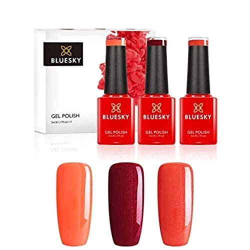 Bluesky Smalto semipermente per Unghie Kit in Gel, Firey Powder. Red Shimmer A015, Desert Poppy 80568, Watermelon Lady A004. 3 X 5Ml. (Soak off UV/LED Gel) Rosso - 15 ml
