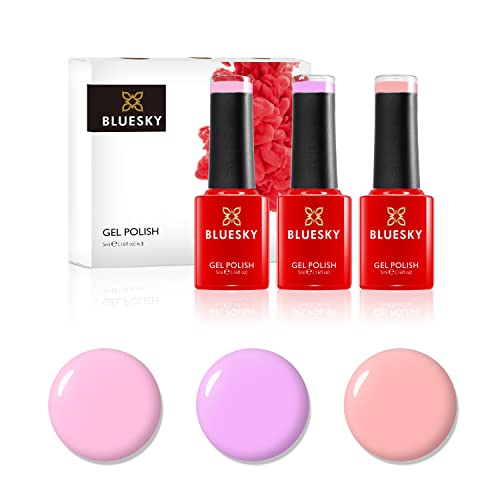 BLUESKY Smalto semipermente per Unghie Kit in Gel, Pastel Neon Collection, Strawberry Cream PN01, Blueberry Dream PN03, Peach Passion PN06 3 x 5ml (Soak off UV/LED Gel) Rosa, Blu - 15 ml