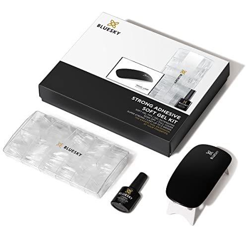 Bluesky Unghie Finte con Colla Kit, 500 Pezzi Soft Gel Tips, Colla per Unghie Gel 10ml, Lampada LED/UV Portatile