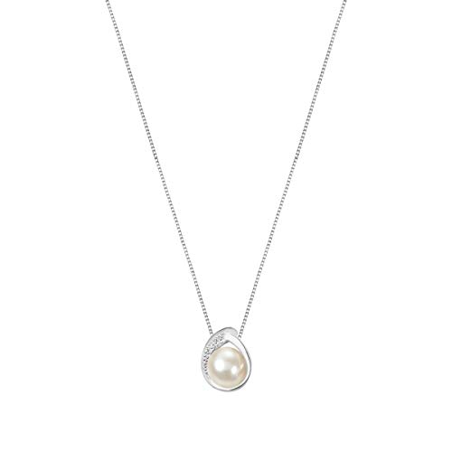 Bluespirit Collana da donna, Collezione Grace, in argento 925 rodiato, perle coltivate, zirconi - P.25B9B30000041