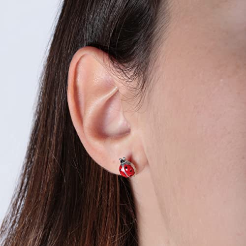 Orecchini in argento 925% caratterizzati dalla particolare forma a cocinella e da una pratica chiusura a farfallina. Il gioiello è un'ottima idea regalo da realizzare per varie occasioni come compleanni, festa della mamma, regali a maestre o insegnanti.