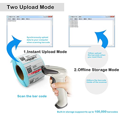 Bluetooth barcode scanner Bluetooth CCD barcode scanner USB, Funnybuy palmare senza fili con ricevitore USB supporto di memorizzazione codici batteria lettore di codice a barre, lunga autonomia bianco White