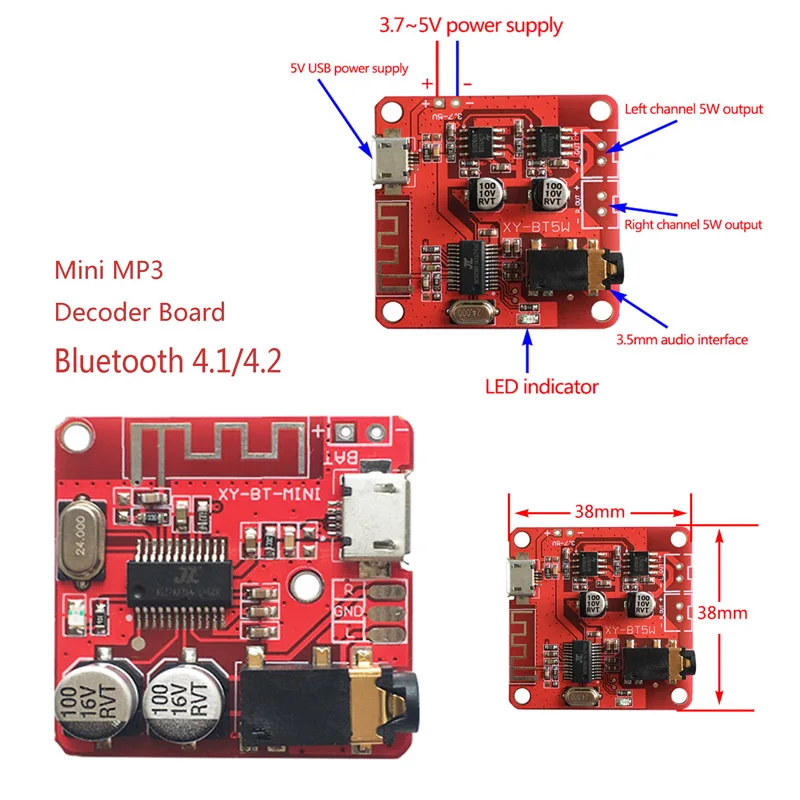 MP3 Bluetooth Decoder Board Lossless Car Speaker Audio Amplifier Board Modified Bluetooth 4.1/4.2 Circuit Stereo Receiver Module