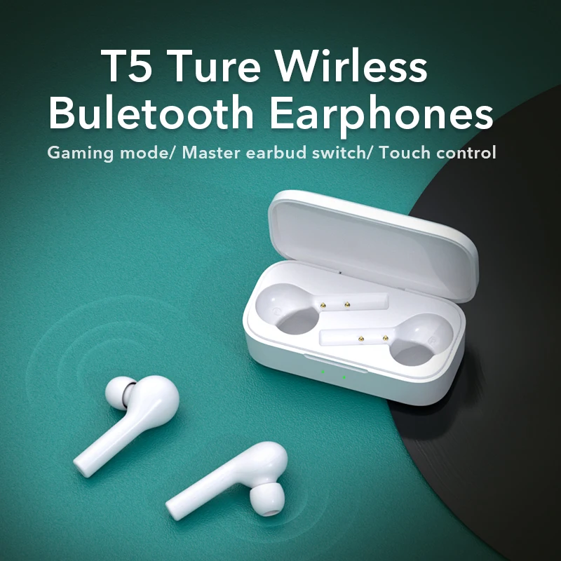QCY T5 Bluetooth Earphones V5.0 Wireless Headphones Touch Control Stereo HD talking with 380mAh battery charging box