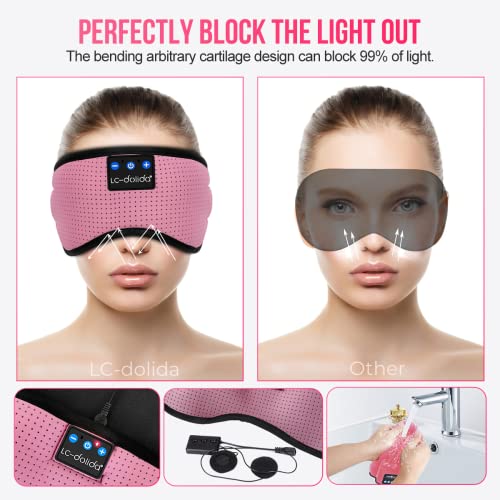 Bluetooth Mascherina per Dormire, LC-dolida 3D Sagomata Mascherina per Occhi 100% bloccare la Luci per Donna e Uomo,Orientabile Maschera da Notte