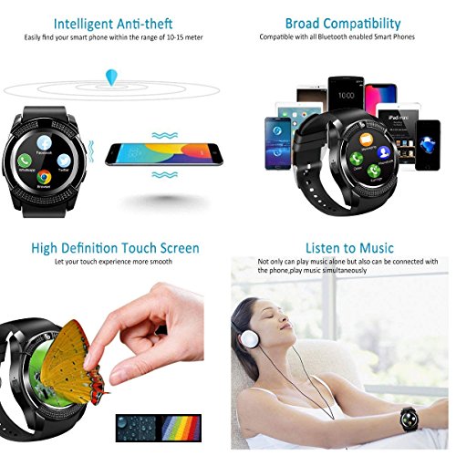 Bluetooth Smartwatch con Camera, Smart Watch Phone Touchscreen,Smart Orologio,Impermeabile Orologio Intelligente con SIM Card Fessura per Android Samsung Huawei ios Phone X 8 7 6 6s 5 Uomo Men Donna