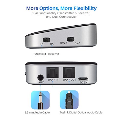 Bluetooth 4.1 trasmettitore e ricevitore, Acekool 2-in-1 wireless portatile adattatore audio apt-X a bassa latenza 2 dispositivi contemporaneamente per casa/auto sistema audio, cuffie, TV