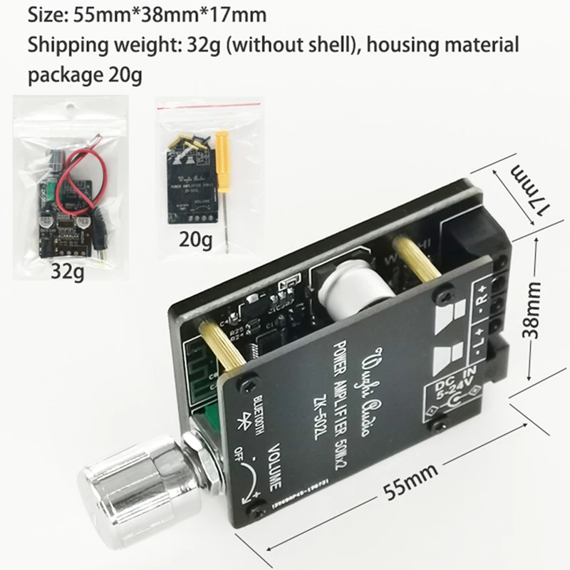 Bluetooth 5.0 Wireless o Digital Power Amplifier Stereo Board 50Wx2 Bluetooth Amp Amplificador ZK-502L