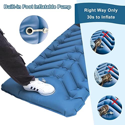 BLUEVER Materassino da Campeggio,Materassino Gonfiabile per Esterni, Materassino per Dormire con Zaino Singolo con Pompa a Pedale per Escursionismo, Tenda, Amaca, Viaggi in Auto (blu navy)