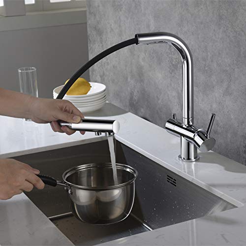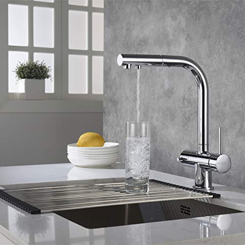 Bluewater,rubinetto a tre vie APALA con doccetta estraibile,rubinetto da cucina,miscelatore per lavello,rubinetto a tre vie,per impianti di osmosi,impianti di acqua potabile,filtro dell'acqua(cromato)