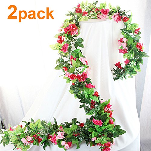 BlueXP 2 Pezzi 230cm Artificiale Ghirlanda Rose di Fiori di Finta Seta Appesa Rattan Ghirlanda Simulazione Pianta Rampicante per Casa di Nozze Giardino Recinzione Decorazione Della Rosa Rossa