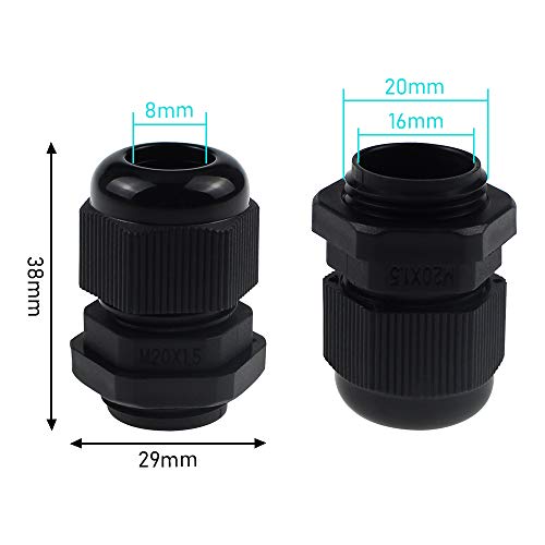 Confezione: 15 pezzi Pressacavi neri, Tipo di oggetto: M20 * 1,5. Gamma di cavi: cavo rotondo 6-8mm, adatto per esterno e giardino.