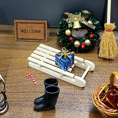 Decorazioni natalizie in miniatura: slitta, stivali, lanterna, albero di Natale, scala di legno, scopa, ghirlanda decorativa dell'albero di Natale, tappeto, cestino, regalo, cavalletto, accessori fai-da-te ideali per i tuoi bambini, crea un'atmosfera festosa.