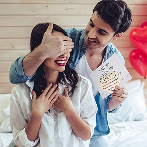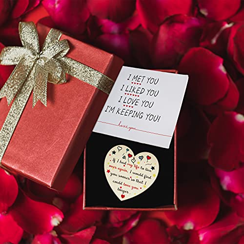 Materiale di qualità: la carta e la busta del buon anniversario ti amo sono realizzate in carta di qualità, sicure da usare e non facili da deformare, la targa con segno di cuore appeso in legno ti amo più a lungo è realizzata in legno naturale, in buona forma e stampata in modo chiaro, garantendo il tuo uso da molto tempo