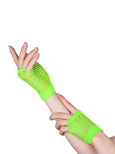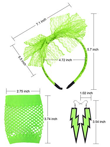 Blulu 80' Fascia in Pizzo Orecchini al Neon Guanti a Rete Senza Dita per 80' Festa KZ0316 (Verde Fluorescente)