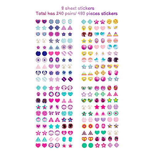 Blulu 480 Pezzi Adesivo Orecchini 3D Adesivo per Gemme Bastone delle Principesse sugli Orecchini Adesivi Glitter Autoadesivi (Stile A)