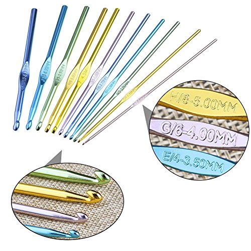 Blulu 23 Pezzi Uncinetti Maniglia in Alluminio Colorato Taglia B, C, D, E, F, G, H, I, J, K e 6 Pezzi di Grandi Occhi Smussati Aghi