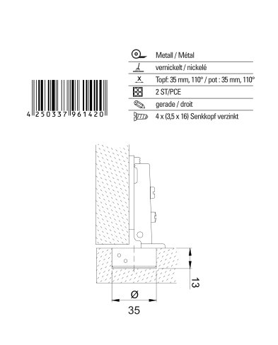 2 pz. Blum Clip-Top cerniera standard, cerniera per mobili con Blumotion e Inserta, metallo nichelato, tazza = 35 mm, angolo d'apertura 110,battuta compl. a sormonto