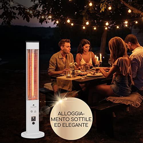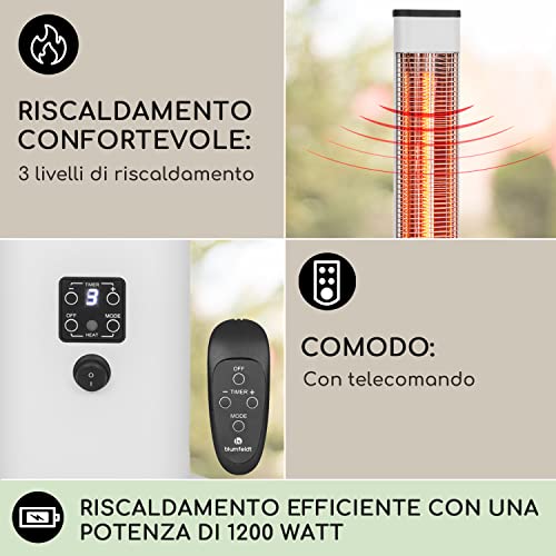 Blumfeldt Heat Guru Plus - Radiatore di Calore in & out, 1200 Watt, Timer 9 Ore, Elemento Riscaldante al Carbonio, 3 Livelli, Alloggiamento con Lega di Alluminio Anodizzato, Bianco