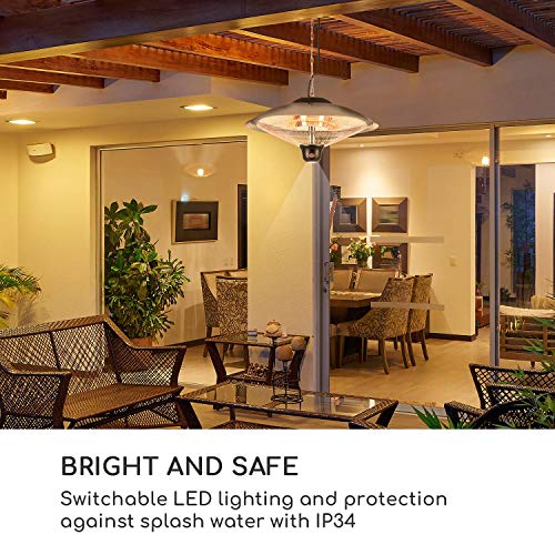 Blumfeldt Heizsporn - Irradiatore di Calore a Soffitto, 60,5 cm (Ø), 3 Livelli: 700W/1300W/2000W, Elementi Riscaldanti in Carbonio, IP34, Lampada LED, Telecomando, Argento