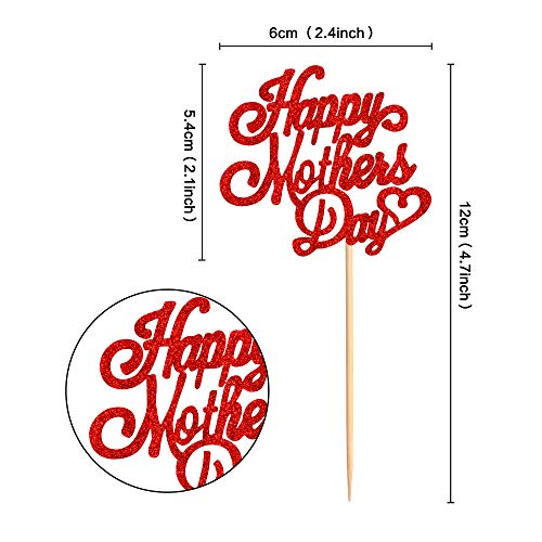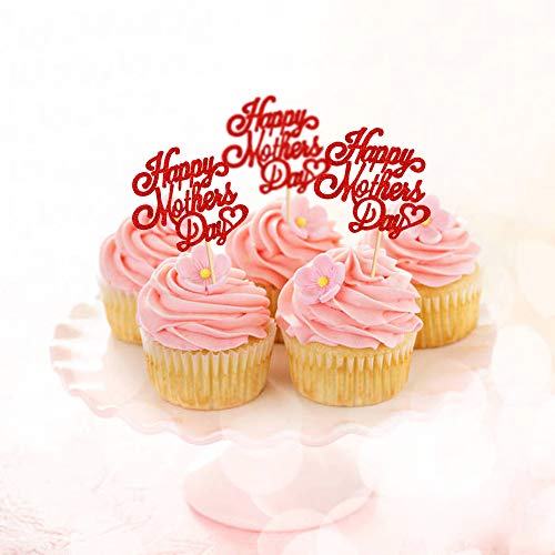Blumomon - 24 topper per cupcake con glitter, con scritta “Happy Mothers Day”, decorazione per torta per la festa della mamma, decorazioni per torte