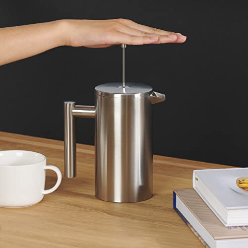 FRENCH PRESS IN ACCIAIO INOX: la nostra french press mantiene il caffè caldo fino al momento di versarlo, grazie all'acciaio inox 304 rinforzato (0,8mm) e al doppio strato sottovuoto. Questo conserverà tutti gli aromi e permetterà una maggiore longevità della pressa