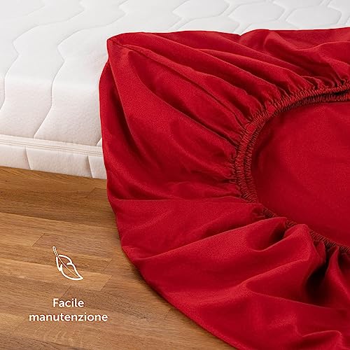 Blumtal Lenzuolo con Angoli Singolo in Microfibra - 1 Pezzo, Lenzuolo Sotto con Angoli Singolo 90 x 190cm, Rosso